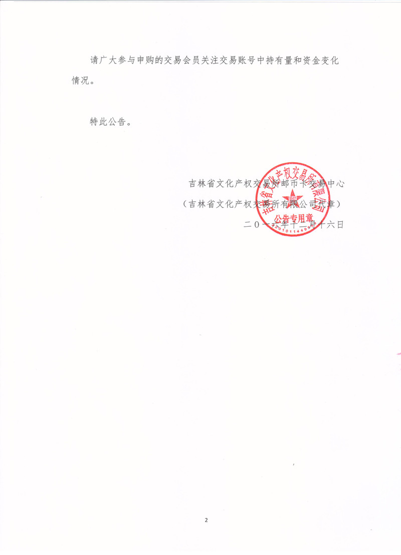 首页 交易中心 中心简介 组织架构 企业资质 活动专区 中心动态 信息披露 中心公告 交易公告 托管公告 入库公告 申购公告 中签公告 上市公告 交易数据 藏品目录 行业资讯 行业新闻 财经新闻 入市指南 开户流程 挂牌流程 托管流程 申购流程 交收流程 交易规则 银商绑定 常见问题 藏品百科 挂牌藏品 邮票 钱币 邮资封片 其他 权威机构 专家委员会 鉴定机构 交收仓库 公证机构 下载中心 相关资料下载 客户端下载 联系我们 您当前的位置:首页 > 信息披露 > 中签公告 返回列表 关于《孙子兵法》藏品申购中签的公告 发布时间:2016-12-16 09:00:01 信息来源: 浏览次数: 上一条:关于《围棋》藏品定向配售的公告 下一条:关于《孙子兵法》藏品定向配售的公告 信息披露 中心公告 交易公告 托管公告 入库公告 申购公告 上市公告 交易数据 藏品目录 热点信息 关于《白马寺与大菩提寺》藏品定向配售的公关于《祖国边陲风光》藏品申购中签及定向配关于《孙子兵法》藏品申购中签的公告关于《白马寺与大菩提寺》藏品申购中签的公关于《三十届奥运会》藏品定向配售的公告关于《金铜佛造像》藏品申购中签及定向配售关于《三十届奥运会》藏品申购中签的公告关于《孙子兵法》藏品定向配售的公告关于《围棋》藏品定向配售的公告关于《围棋》藏品申购中签的公告 合作伙伴 中心简介|企业资质|组织架构|中心动态|活动专区|联系我们 通信邮箱:info@jlcaee-scp.com版权所有:吉林省文化产权交易所有限公司All Rights Reserved. Powered by吉ICP备14004752号-3